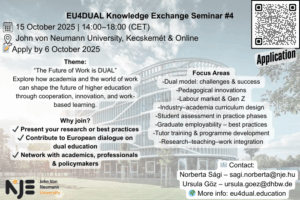 The future of work is DUAL Join us The Centre of Excellence on Dual Higher Education invites you to our